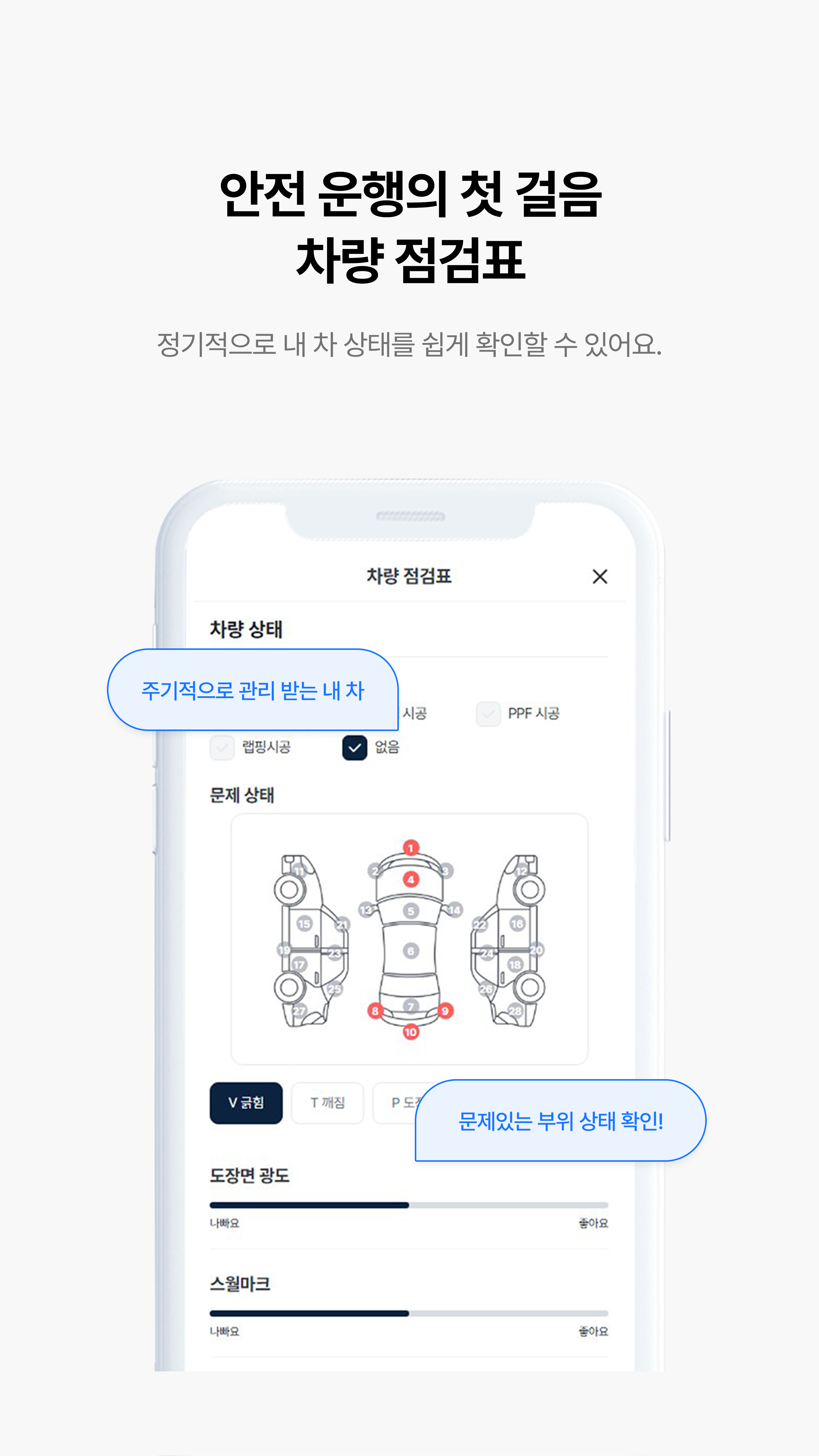 외부 세차 시 세차로 인해 발생하기 어려운 도장면의 심각한 손상(페인트층 손상으로 판금·도색이 필요한 상태)에 대해서는 책임을 지지 않습니다.